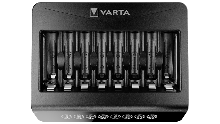 Мулти зарядното LCD устройство на Varta е идеалното решение за зареждане на до 8 батерии от тип АА или ААА едновременно. То разполага с LCD дисплей, който показва текущия заряд на всяка батерия и състоянието на зареждане.